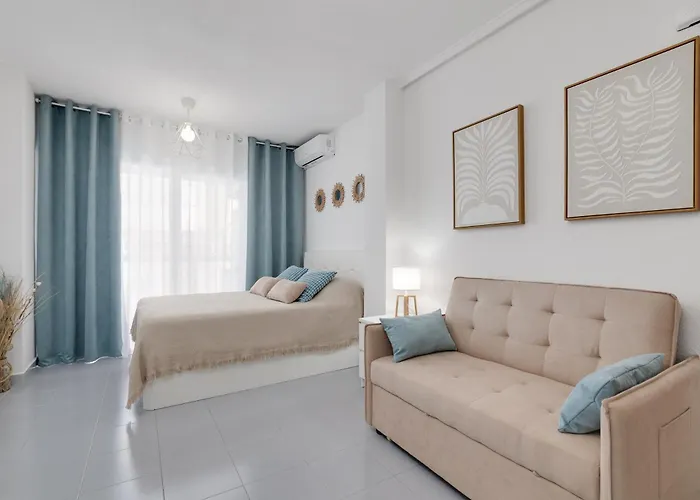 The 35 m² Studio Lois Torrevieja is approximately a 25-minute walk from the Parque de Las Naciones. Staying in this apartment, nestled in the vicinity of the Playa Del Cura, guests can relax on a terrace.